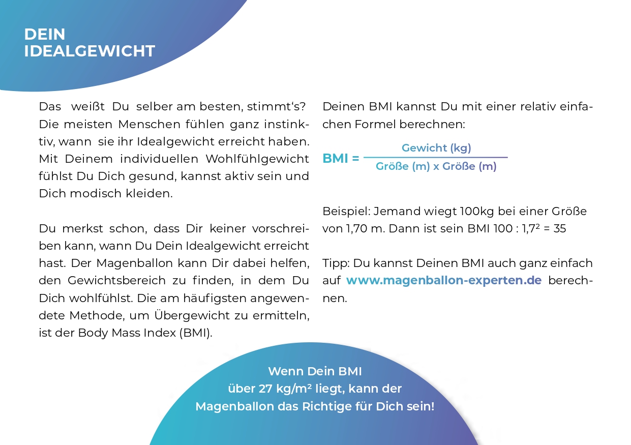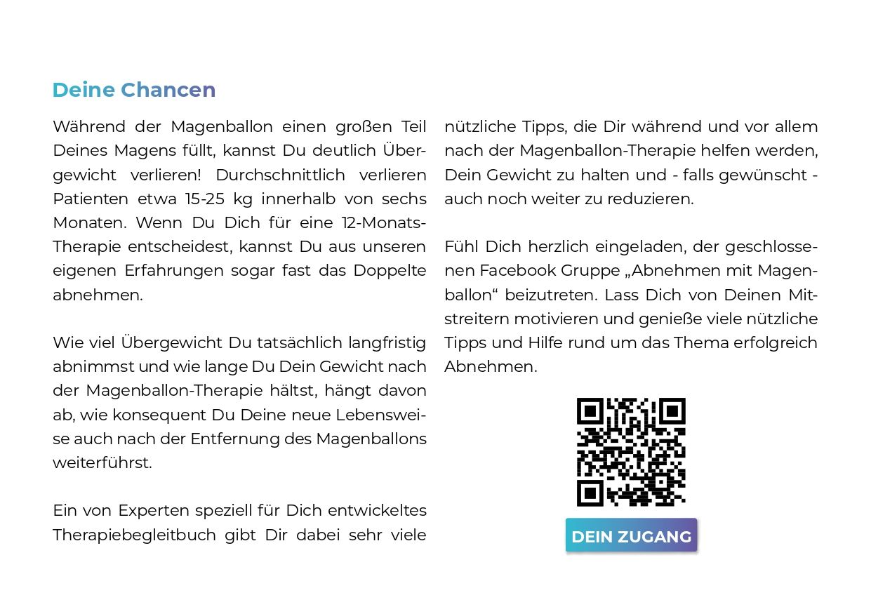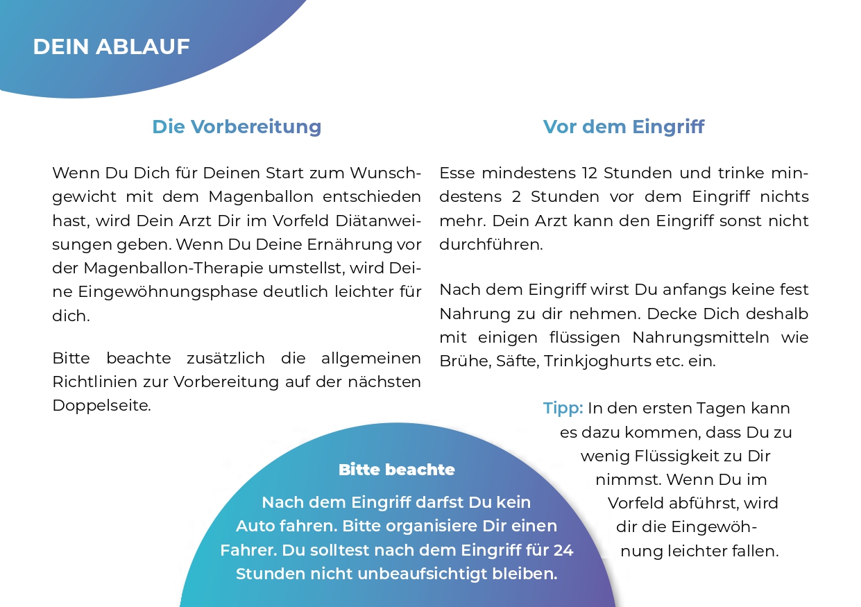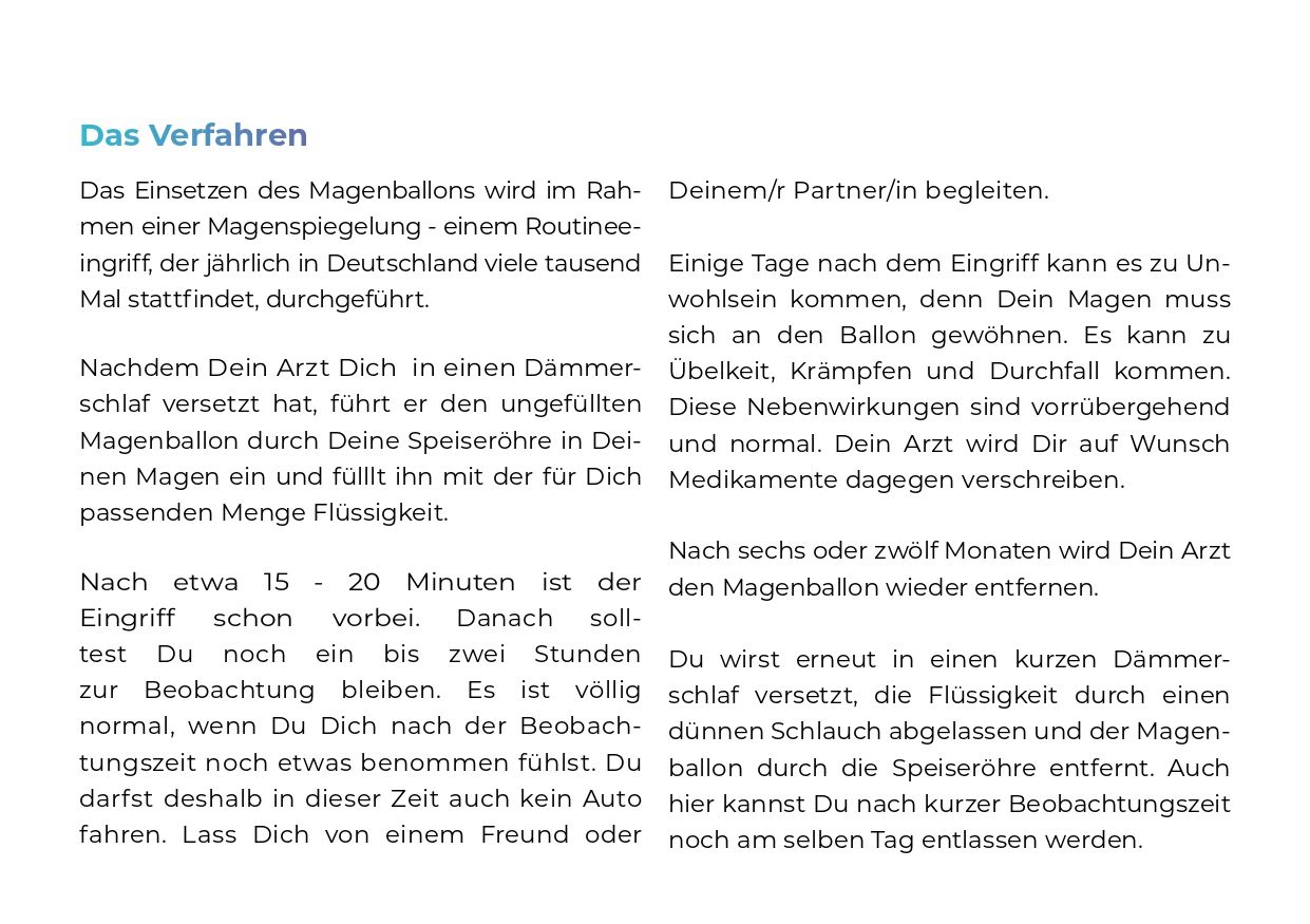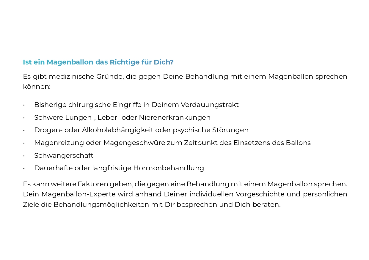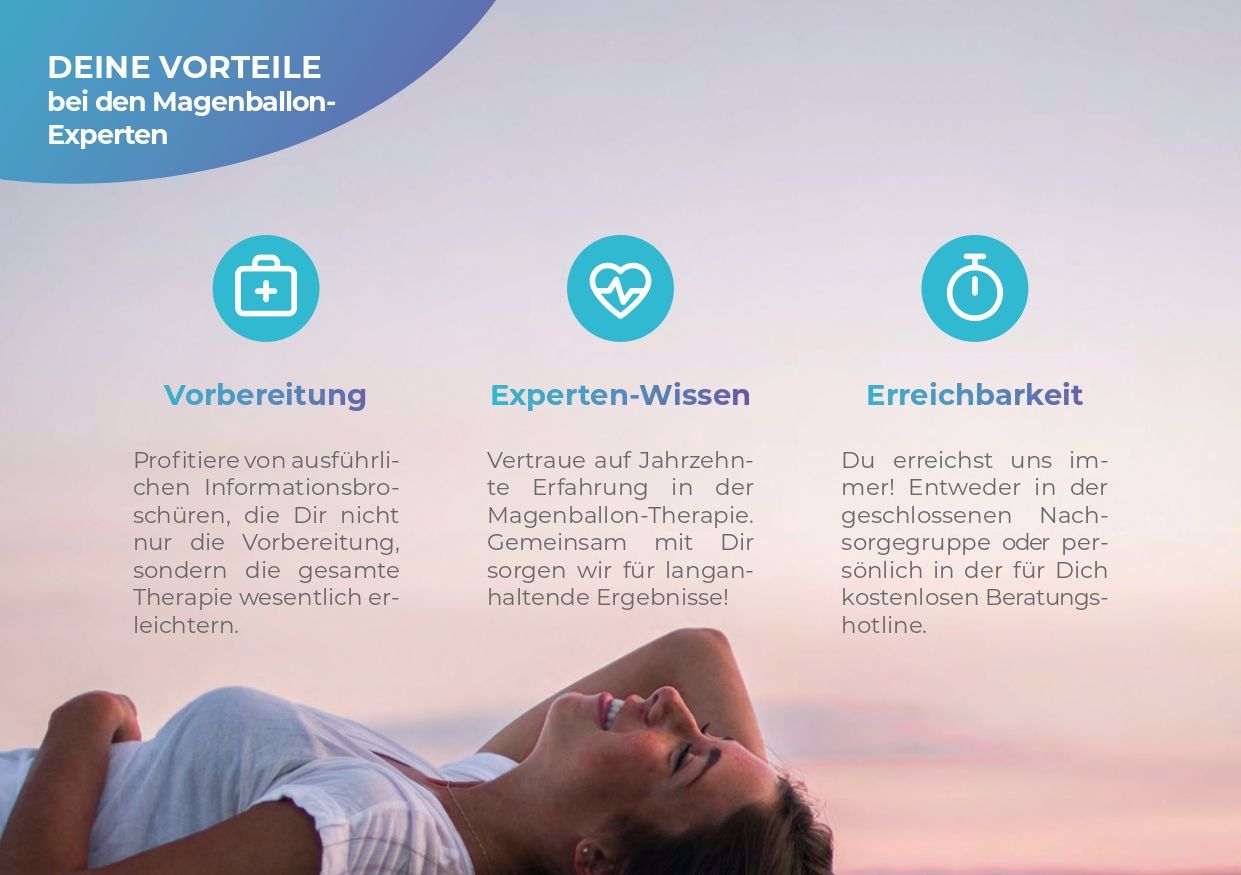 Wusstest Du, dass Du dir auch ganz einfach kostenlos und unverbindlich ein Informationspaket zur Magenballon-Therapie nach Hause schicken lassen kannst? Darin sind alle für dich wichtigen und nützlichen Informationen, ein Beratungsgutschein (nicht an allen Standorten) und auch die Kontaktdaten zum Magenballon-Experten in Deiner Nähe. Bestens vorbereitet, kannst Du dich dann in Deiner Praxis über Deine Möglichkeiten mit dem Magenballon aufklären lassen.