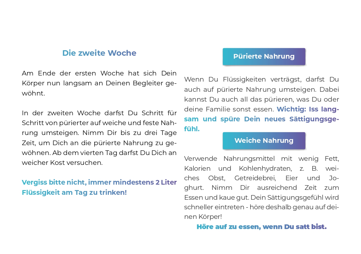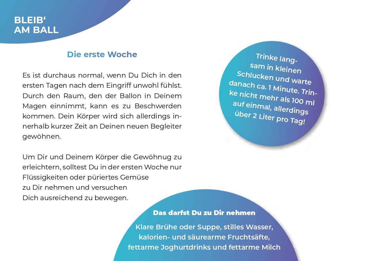 Ja, wir empfehlen, sich 2–3 Tage zu schonen. In dieser Zeit kann es zu Übelkeit oder Erbrechen kommen, bis sich Ihr Magen an den Ballon gewöhnt hat. Mit geeigneten Medikamenten lassen sich diese Beschwerden gut behandeln.